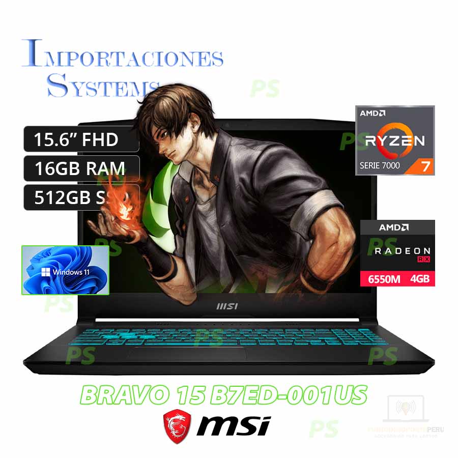 LAPTOP MSI BRAVO 15 B7ED-001US AMD RYZEN 5 7535HS / 16GB RAM / 512GB SSD / 15.6” FHD (1920×1080) 144HZ / AMD RADEON RX 6550M 4GB / WINDOWS 11 (701016) 100% Nuevo